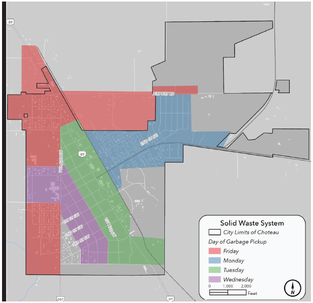 The roll-off site is located two miles north of Choteau on Hwy 220. They are open Tuesday through Saturday from 9:00am to 5:00pm. They are closed on Holidays.
